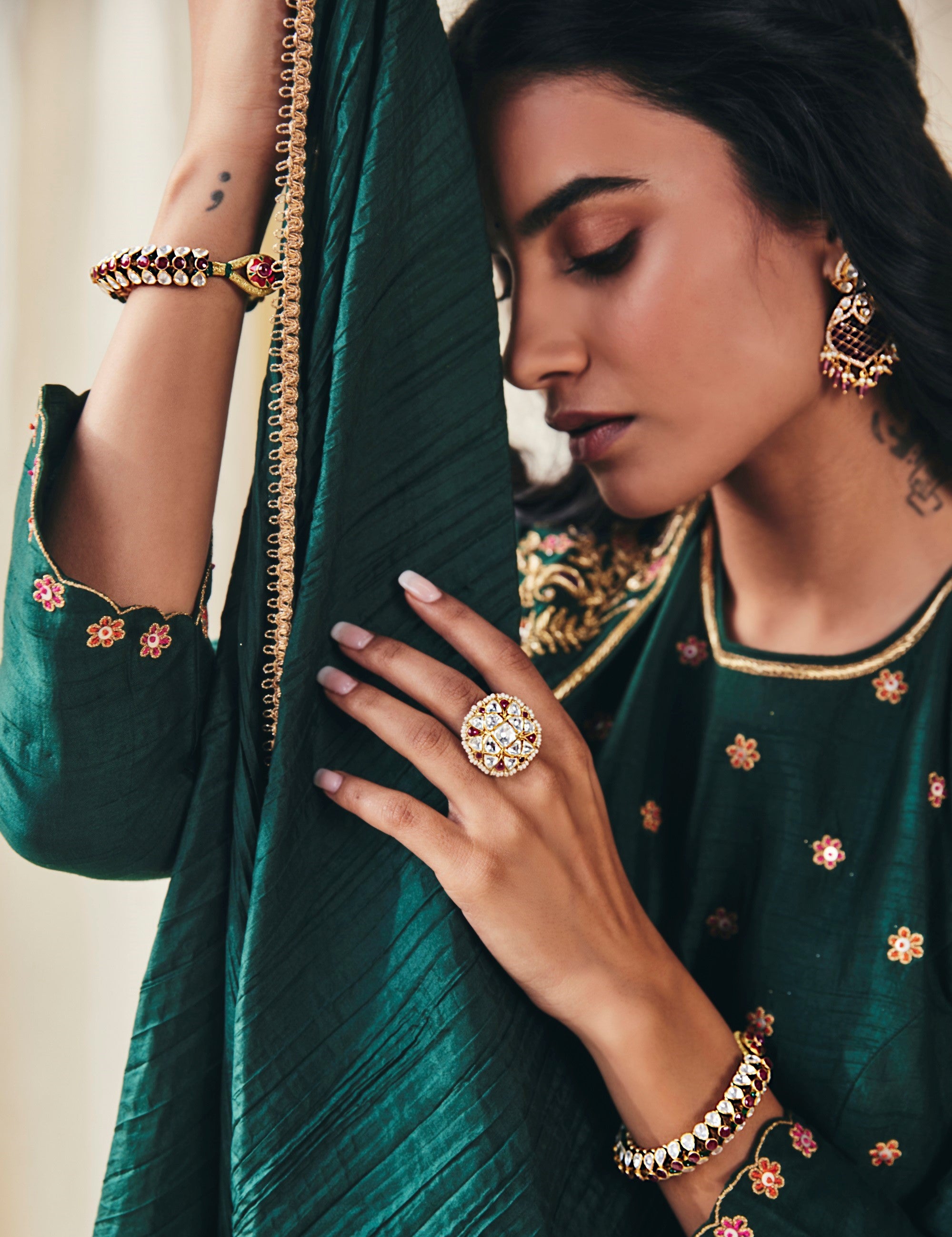 Emerald Polki Floral Motif Studs