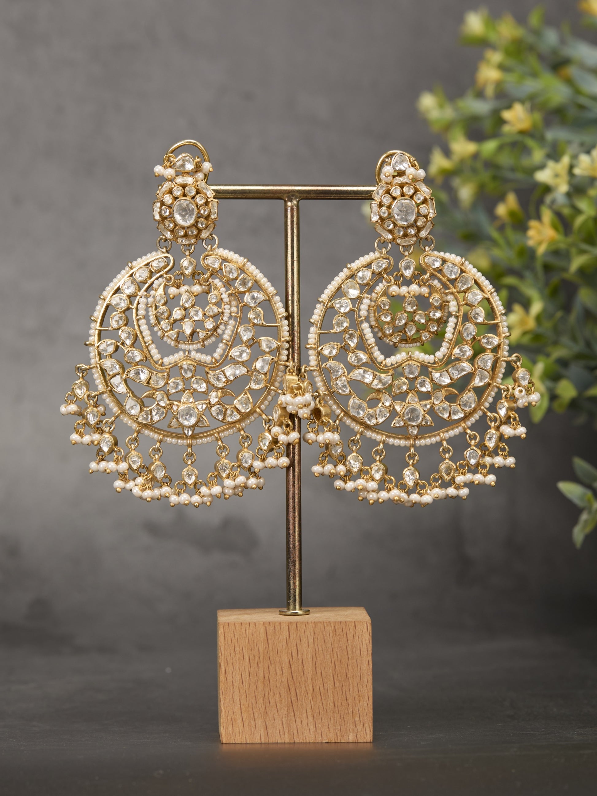 Featuring an 18kt Gold Plated 92.5 Silver Vellore Polki Chaandbalis & Fresh Water Pearls