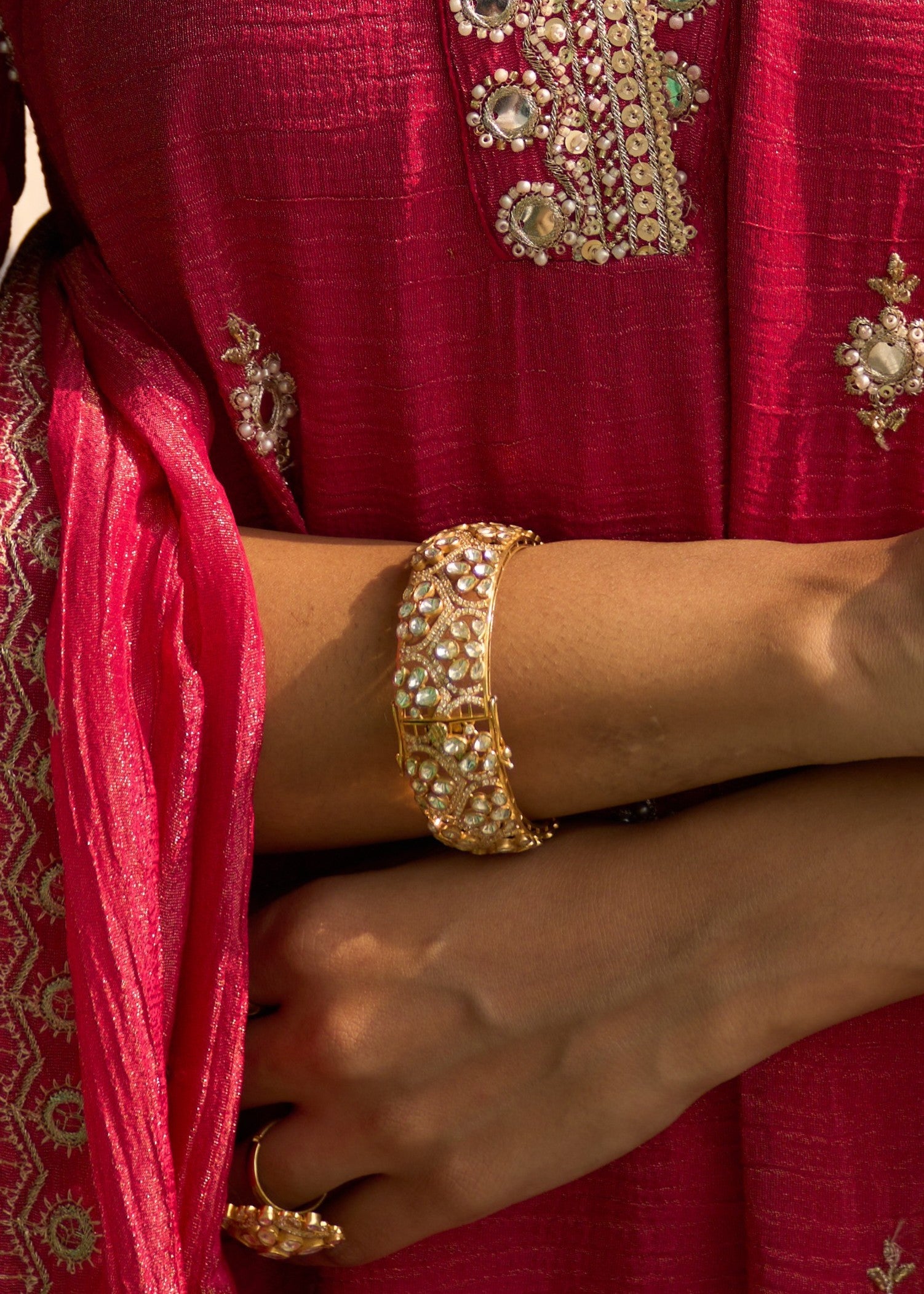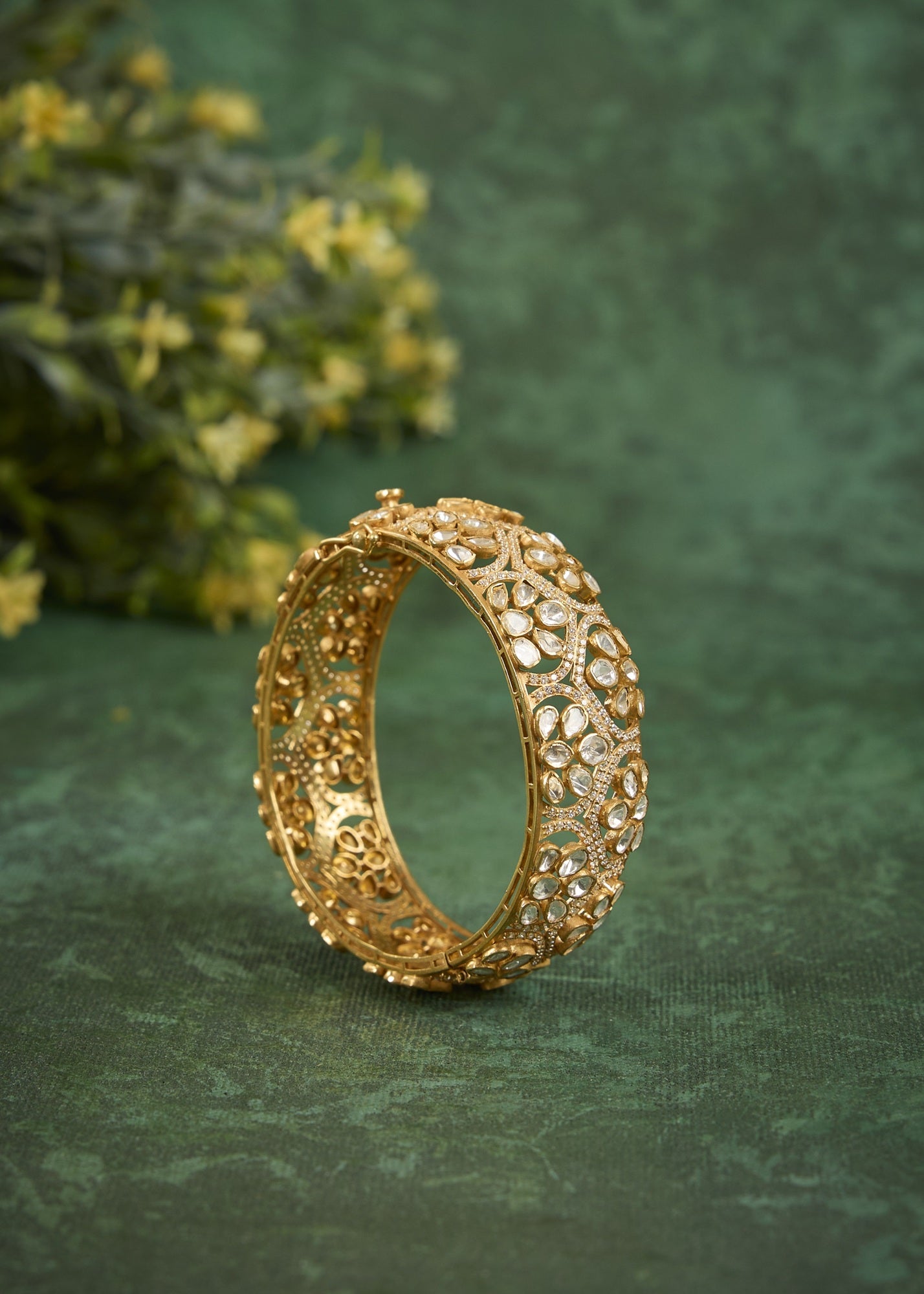 Featuring An 18Kt Gold Plated 92.5 Silver Vellore Polki Kada With CZ Diamonds