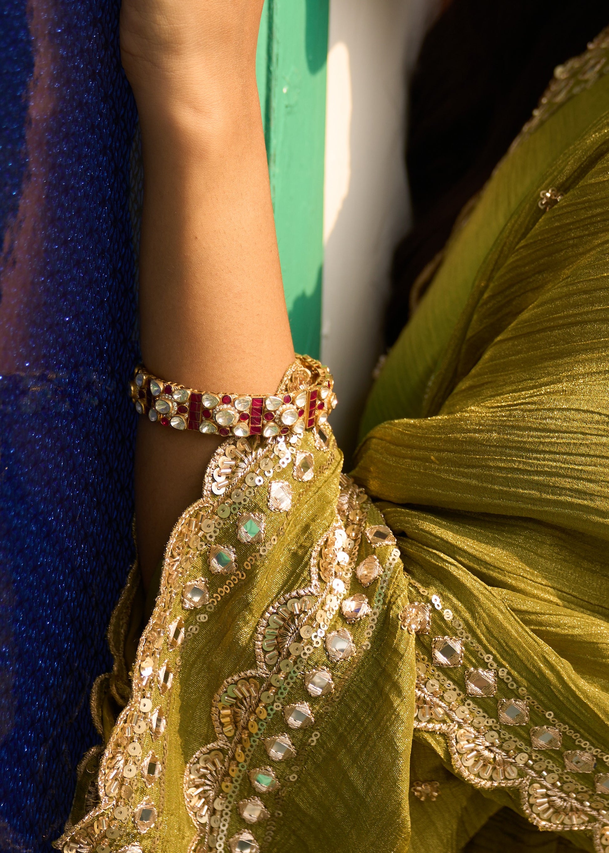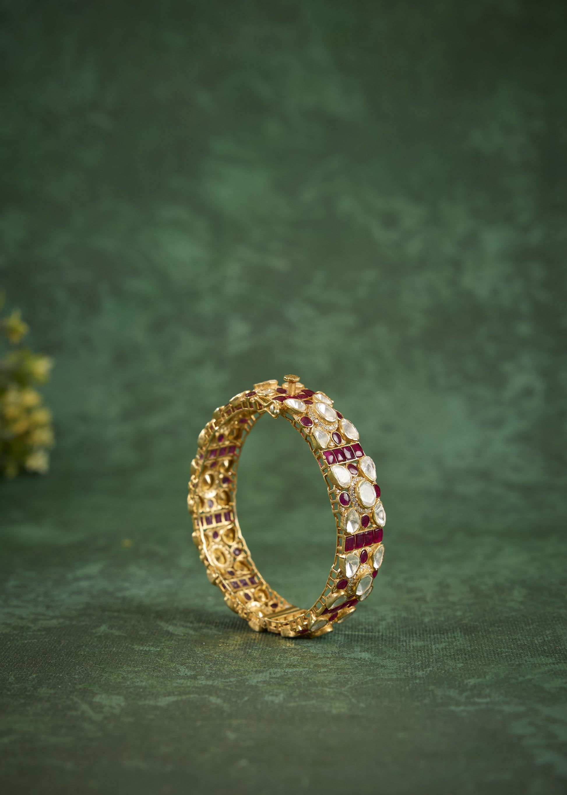 Featuring An 18Kt Gold Plated 92.5 Silver Polki Kada With Red Utrai & CZ Diamonds